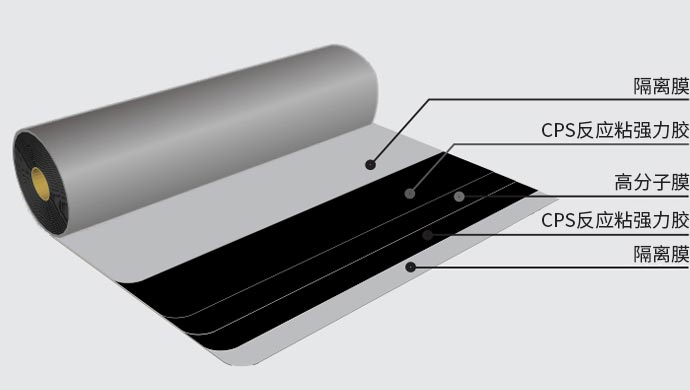 由CPS反应粘强力胶与高分子膜复合而成,起到双重防水协同增强功效。